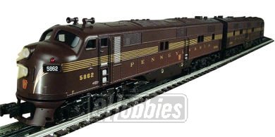General Motors E7 Pennsylvania Tuscan 5-stripe powered A / dummy A scale diesel set.
